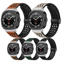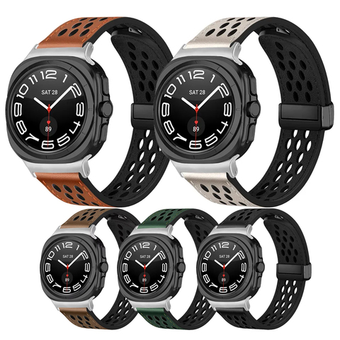 Hebilla plegable magnética de cuero transpirable elástica hueca para Samsung para Galaxy Watch 47mm Ultra Band pulsera deportiva de lujo