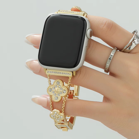 कस्टम लक्जरी सुरुचिपूर्ण ओएम चार पत्ती क्लैवर वॉचबैंड हलिंग वाली गैंडा महिला सेब आईवॉच 3 4 5 श्रृंखला के लिए पट्टियाँ देखती हैं