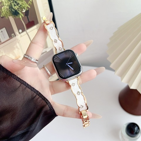 महिलाओं की स्टेनलेस स्टील घुमावदार फिल्म डायमंड मेटल स्ट्रैप घड़ी बैंड सेब के लिए 11/10/9/8/7/6/5 ड्रॉप गोंद गोंद के लिए संगत