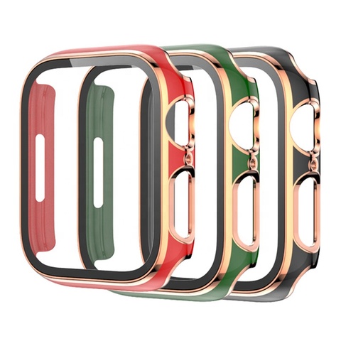 अल्ट्रा-पतले पीसी इलेक्ट्रोप्लेटिंग टेम्पर्ड ग्लास पूर्ण स्क्रीन वाटरप्रूफ प्रोटेक्टर केस कवर सेब 10 46 मिमी 42 मिमी 49 मिमी बैंड